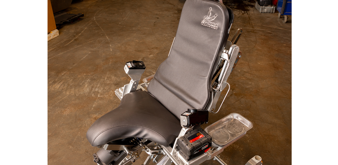 Transition effortlessly from sitting to lying flat and going under objects with full ergonomic support. The Human Hoist Chair adapts to your needs, helping you stay focused and comfortable during long, demanding tasks.